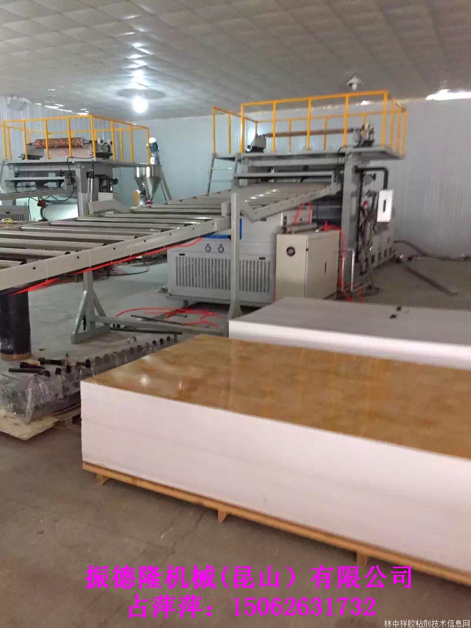 配方 ---混料---擠出---模頭---三輥壓光---冷卻---牽引---自動切割---自動 放板。