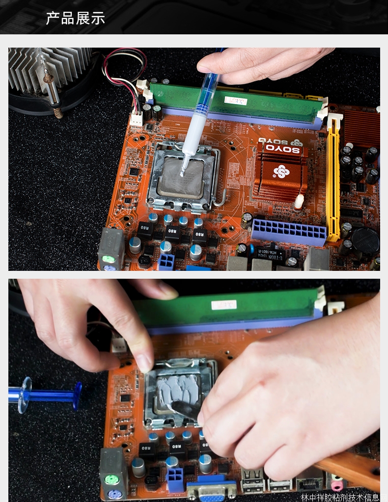 CM7430 導熱硅脂,是一種快速導熱散熱的有機硅脂狀材料。廣泛涂覆于各種電子產品,電器設備中的發熱體 (功率管、可控硅、電熱堆等)與散熱設施(散熱片、散熱條、殼體等)之間的接觸面,起散熱作用和防潮、防塵、防腐蝕、防震等性能。如常應用于電源、控制器、計算機、晶體管、CPU、熱敏電阻、傳感器、汽車電子、冰箱、電源模塊、打印機頭、三極管、整流器、顯卡、內存、通信設備、LED、集成燈、電視機、散熱器、存儲驅動等各種元器件的表面涂覆或整體灌封。