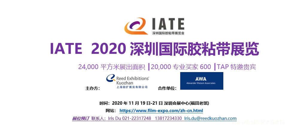 2020 深圳國際膠粘帶展覽會簡稱(IATE),將于2020年11月19-21日在深圳會展中心隆重舉行。本屆展會是上