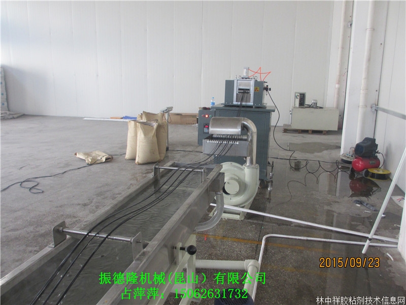 高混機(jī)----螺旋自動(dòng)上料機(jī)------雙螺桿造粒機(jī)-------冷卻水槽-------吹干機(jī)-------切粒