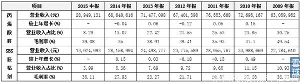 綜合需求量及增長率看,這一塊的價值并不大,還有一點就是下游行業適用性廣,企業集中度不高,其他膠黏劑企業激烈競爭,該類產品本質上是同質競爭,隨之的銷售模式多為經銷商模式,并不能與下游企業產生粘性,最終的比拼還是在價格上, 長遠看若非高端產品的開發外毛利會不斷降低,同時想要有業務的擴展則需關注銷售渠道的擴張及投入。