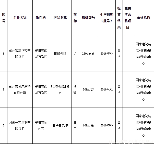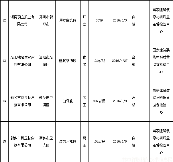 河南省質(zhì)監(jiān)局:17批次建筑膠粘劑產(chǎn)品抽檢全部合格
