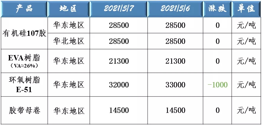 有機(jī)硅107、EVA樹脂、環(huán)氧樹脂和膠帶母卷原料價(jià)格走勢(shì)