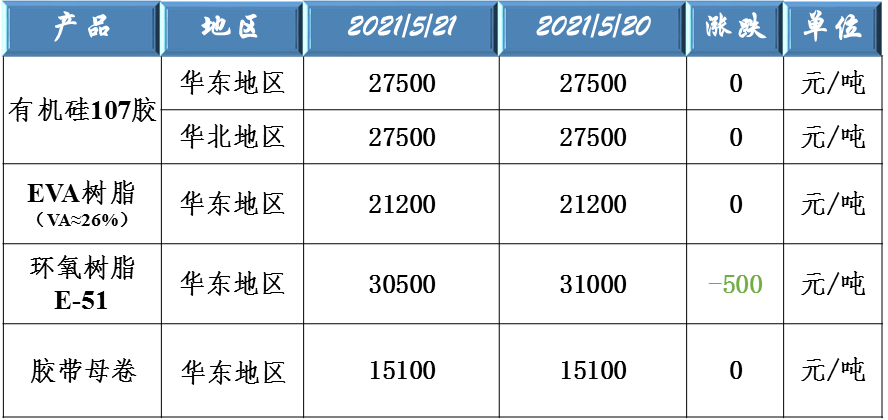 有機(jī)硅107、EVA樹脂、環(huán)氧樹脂和膠帶母卷原料價(jià)格走勢(shì)
