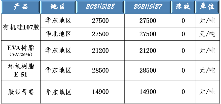 有機硅107、EVA樹脂、環(huán)氧樹脂和膠帶母卷原料價格走勢